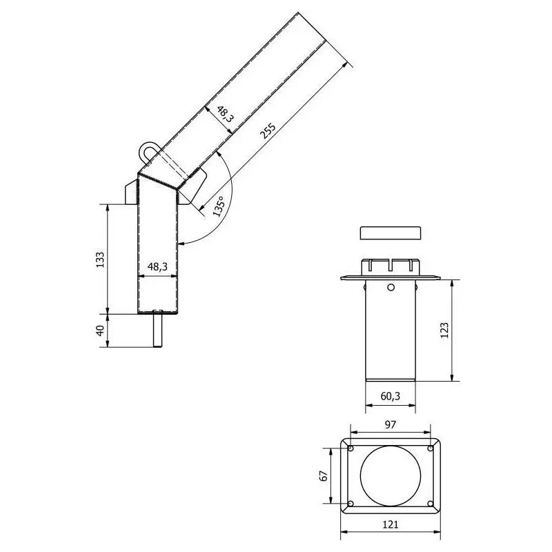 • Diamètre du tube : 60,3 mm x 1,5 mm