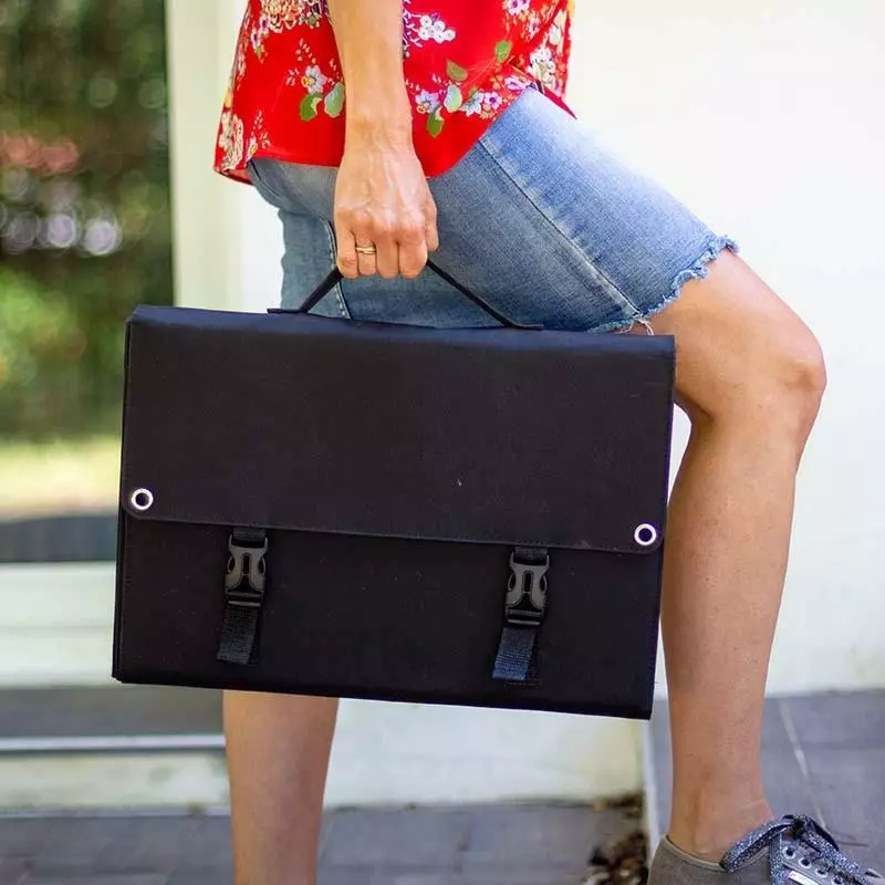 Facilité d’utilisation : il suffit simplement de brancher l’appareil à la connectique appropriée. Pas de frais de fonctionnement, pas d’entretien toutes les 100 heures comme un groupe électrogène classique. Cette batterie externe se recharge par panneau solaire 36V : nous vous conseillons le modèle pliant 120W (réf. 39154) ou le flexible (réf. 39155) où il faudra compter au moins 15h d’ensoleillement. Vous pouvez également raccorder 2 panneaux solaires en parallèle pour doubler la puissance et diviser le temps de chargement par deux.