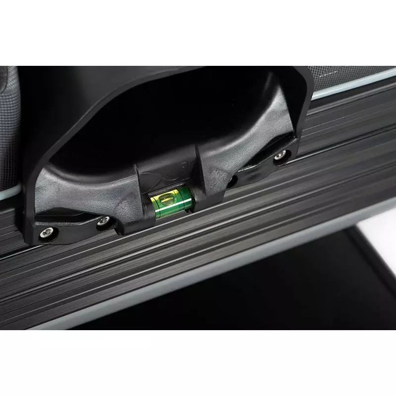 • Revêtement de repose-pieds en plastique texturé robuste, avec niveau à bulles intégré