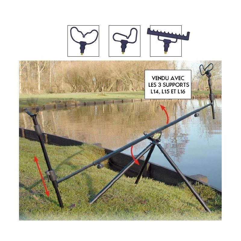 Poutre centrale télescopique de 100 à 150cm par molette. Système anti-rotation des têtes feeders.